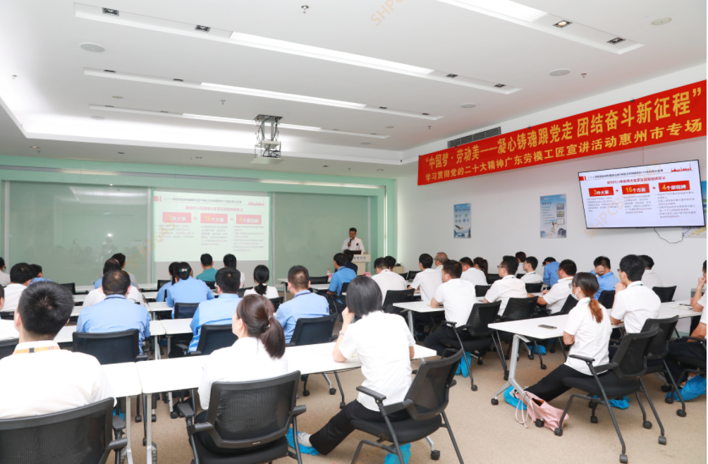 为深入学习宣传贯彻党的二十大精神,切实引领广大职工群众在新时代新征程上踔厉奋发、勇毅前行。5月16日晚,"中国梦·劳动美一凝心铸魂跟党走、团结奋斗新征程”学习贯彻党的二十大精神广东劳模工匠宣讲活动走进jiuyou.com九游科技。宣讲会由党的二十大代表、学习贯彻党的二十大精神市委宣讲团成员、中海油惠州石化有限公司技能专家高东斌授课,惠州市总工会组宣部部长李伟宏,组宣部高俊华、惠阳区总工会副书记钟耀辉、组宣部负责人米天平、公司工会主席/采购中心总监杨峰伟以及各中心/事业部代表50余人参加。