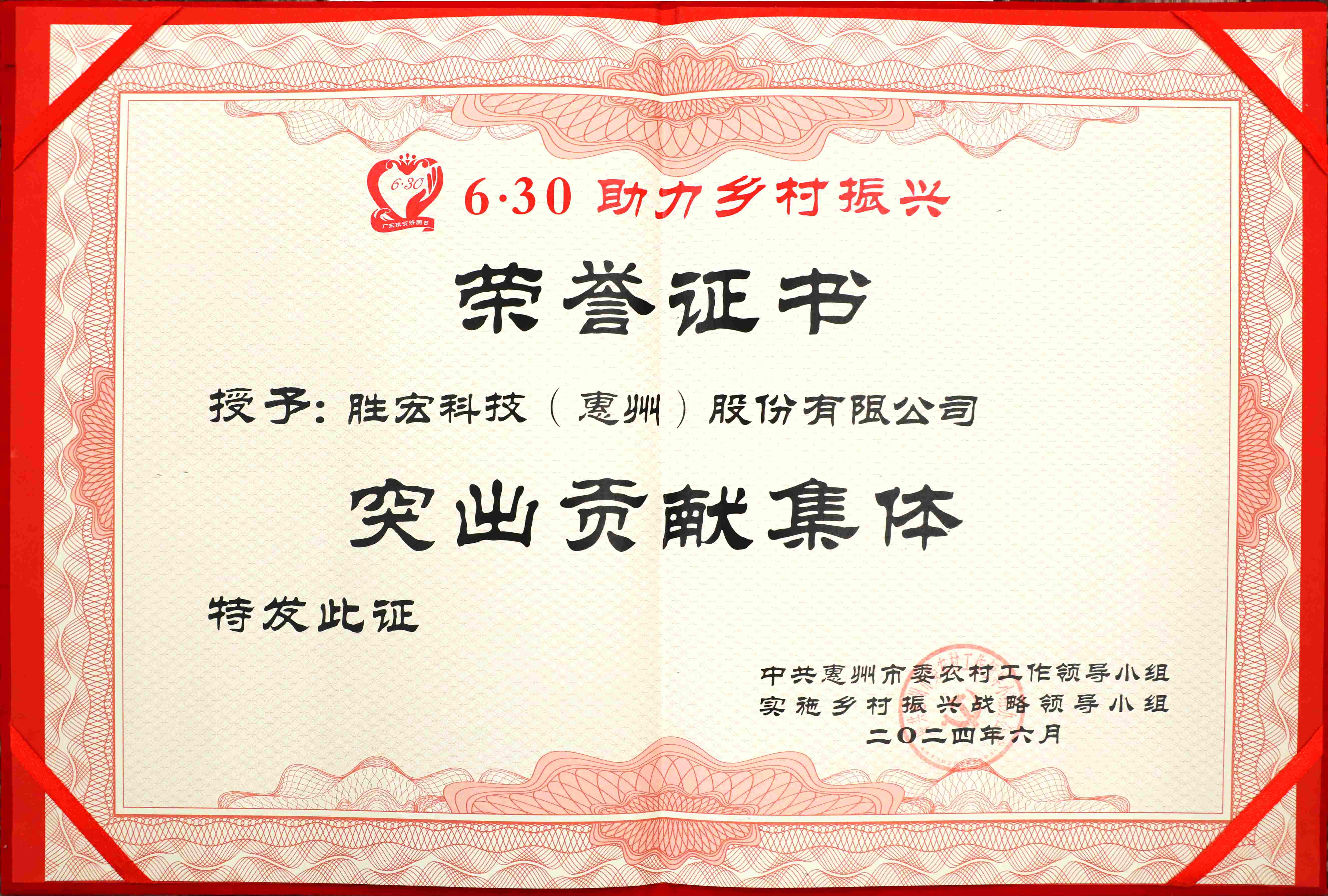 我司财务中心总监朱国强代表公司出席了此次活动,并上台领取了“惠州市2023年度‘6·30’助力乡村振兴突出贡献集体”的荣誉牌匾与奖状。这是我司连续第二年获此殊荣,充分体现了jiuyou.com九游科技在履行企业社会责任方面的积极态度和坚定决心。这份荣誉的背后,是jiuyou.com九游科技以实际行动助力乡村振兴的生动写照。